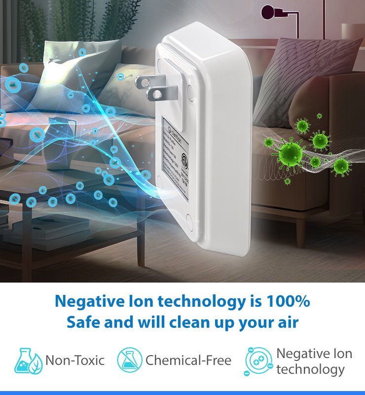 Negative Ion technology is 100% safe and green technology that will help clean up your air without any toxicity or chemicals.