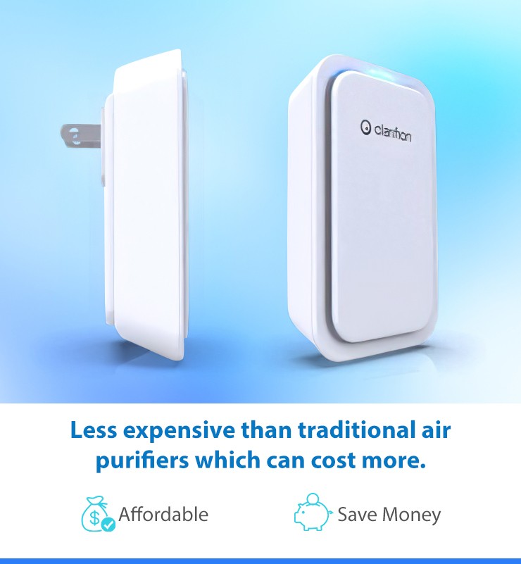 Clarifion is significantly less expensive than traditional air purifiers which can cost more than $250 and have expensive replacement filters.
